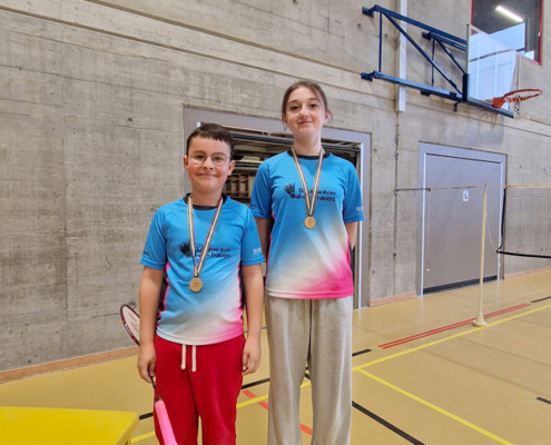 Le Badminton Val-de-Travers était fièrement représenté par 14 juniors, qui ont tous montré engagement et détermination sur les terrains. À noter tout particulièrement la première expérience en tournoi de Milan Kottisch (U11) et Eloan Buchs (U13). Ayant débuté le badminton à la rentrée scolaire 2025, ils ont pu découvrir le fonctionnement d’une compétition officielle. Malgré une sortie de poule sans victoire, cette expérience leur a permis de prendre de l’assurance et de poser de solides bases pour la suite de leur progression.