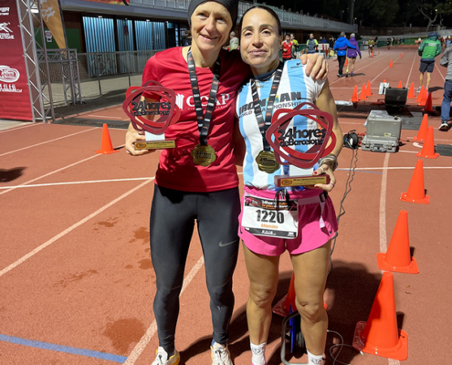 Julia Fatton, à gauche, et Alfonsina Peppa la vainqueure des femmes avec 129.685 km, 1re W45.