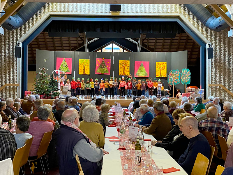 Pour l’occasion, la salle Fleurisia brillait de mille feux. Les décorations réalisées par les enfants, leurs chants reflétant toute la magie de Noël, ainsi que la musique de l’Écho de Belle-Roche ont largement contribué à créer une atmosphère joyeuse et lumineuse, très appréciée des participants.