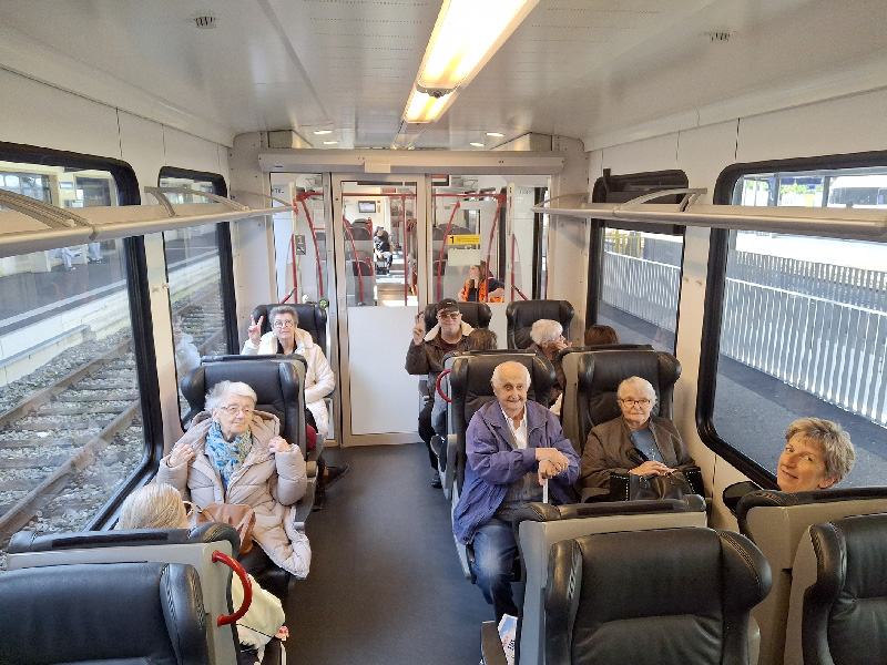 C’est principalement en convoi de 4 véhicules que les résidents ont parcouru le trajet par un beau soleil printanier, mais surtout en train – et c’est peut-être là l’exception ! Un voyage en train fort apprécié par les participants durant lequel un des résidents, passionné de trains, a eu l’occasion de visiter la cabine du conducteur.