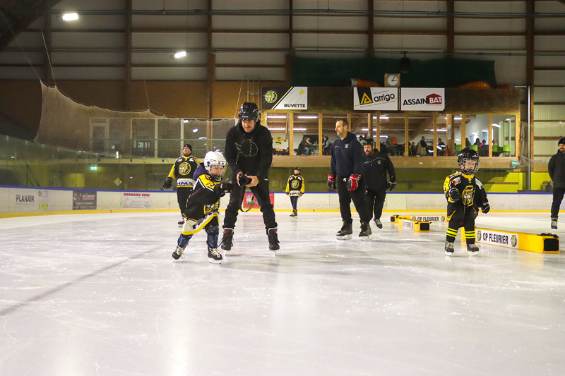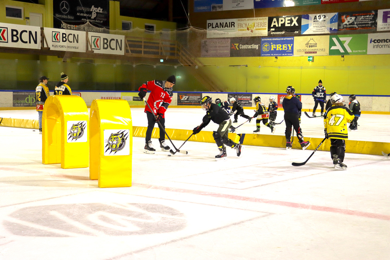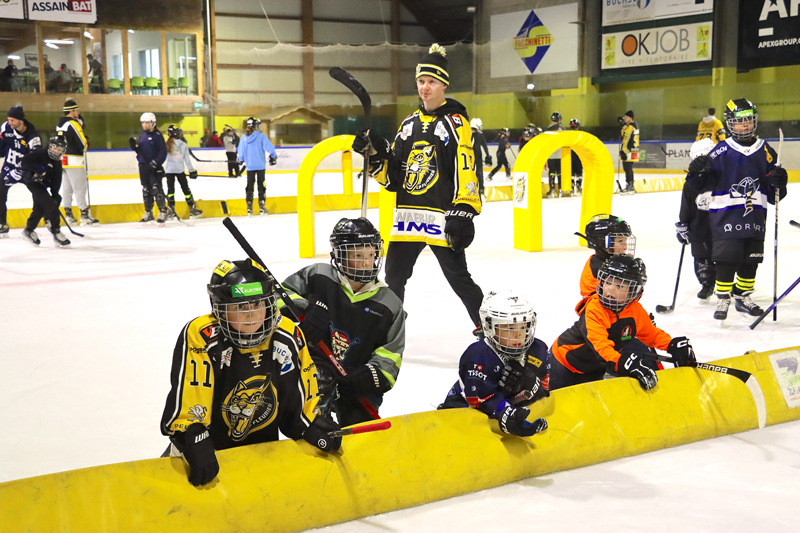 Grosse journée que celle vécue dimanche passé au Centre de sports de glace de Fleurier. La patinoire n’a pas désempli de toute la journée. Le matin, c’est le Swiss Ice Hockey Day qui a fait une kyrielle d’heureux. L’idée de cette matinée est simple : mettre le réveil le dimanche matin ! Oui mais avec une bonne raison à la clef : aller sur la glace pour croiser les crosses avec les stars du championnat suisse. Ça vaut bien le sacrifice de la grasse matinée. Et les jeunes ont répondu en nombre : un, deux, trois… dix, onze,.. quarante,… le responsable du mouvement juniors du CP Fleurier ne savait plus où donner de la tête pour compter les participants à cette matinée. « Bref, on a fait le plein on est contents », finit-il par lâcher.