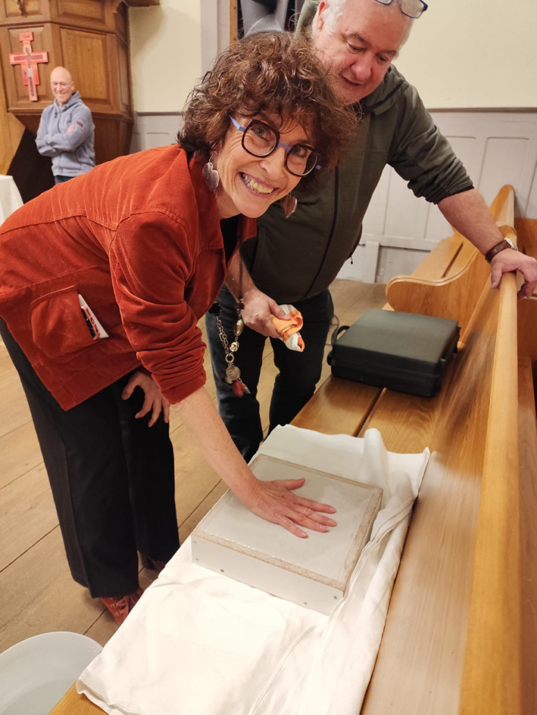 Après une salve d’applaudissements et un morceau de bossa nova, la nouvelle citoyenne d’honneur a eu son empreinte de main moulée dans le plâtre, comme le veut la tradition, par Antonio Gonzalez, désormais responsable de l’emplâtrage. La cérémonie s’est conclue avec la levée des bans de l’absinthe communale, dont l’étiquette a été réalisée par l’artiste et graphiste Mathilde Vaucher, enfant de Môtiers. Une création troublante, selon le président du Conseil communal et « qui questionne autant qu’elle séduit ».