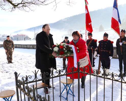 Dimanche dernier au matin, le traditionnel hommage aux Bourbaki a eu lieu à cheval sur la frontière franco-suisse. D’abord au temple des Verrières puis sur le Monument aux Morts de la Cluse-et-Mijoux. Cent cinquante-cinq ans jour pour jour après l’accueil de l’armée française du général Bourbaki sur nos terres, la question du temps a plus que jamais été au centre des cérémonies mémorielles en hommage à ce glorieux passé.