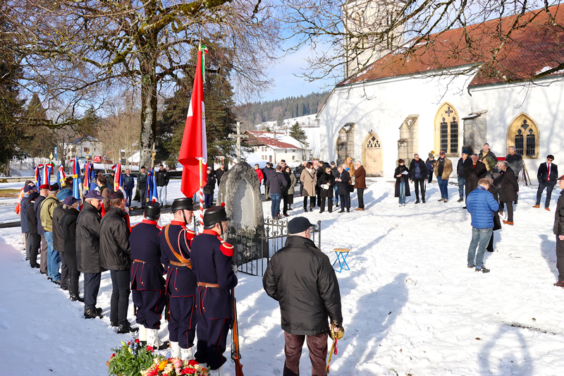 Après une brève pause, il approfondissait sa démonstration : « Notre devoir de mémoire autour des Bourbaki est empreint de solidarité et d’empathie par rapport à ceux qui ont souffert (ndlr : en l’occurrence l’armée française de l’Est en déroute et poursuivie par les forces prussiennes en début d’année 1871). Pourtant, la commémoration de cette souffrance, vieille de 155 ans, n’a peut-être jamais autant renvoyé aux réalités actuelles. La solidarité et l’empathie seront sans doute des forces pour l’avenir », face à l’instabilité planétaire et à la militarisation galopantes des relations. Le Bourbaki d’honneur 2026, Gérard Tissot-Robbe – agriculteur, historien et auteur – a pris le sillage de Christian Mermet pour faire entrer en postérité l’armée Bourbaki et son général « qui était tout sauf un pleutre contrairement à ce qu’on entend parfois. » Une armée qui ne capitula pas en trouvant refuge en Suisse mais qui recula pour mieux repartir au combat. Et ça, les générations de demain feraient bien de le comprendre elles aussi…