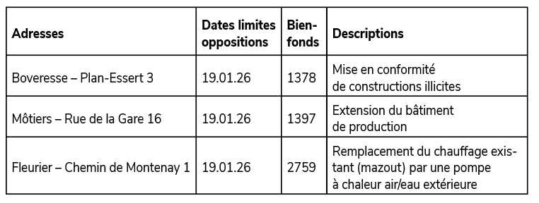 Les demandes doivent être adressées à : Protection de la population, Abbaye de Fleurier, Grand-Rue 38, 2108 Couvet jusqu’au 31 janvier 2026.