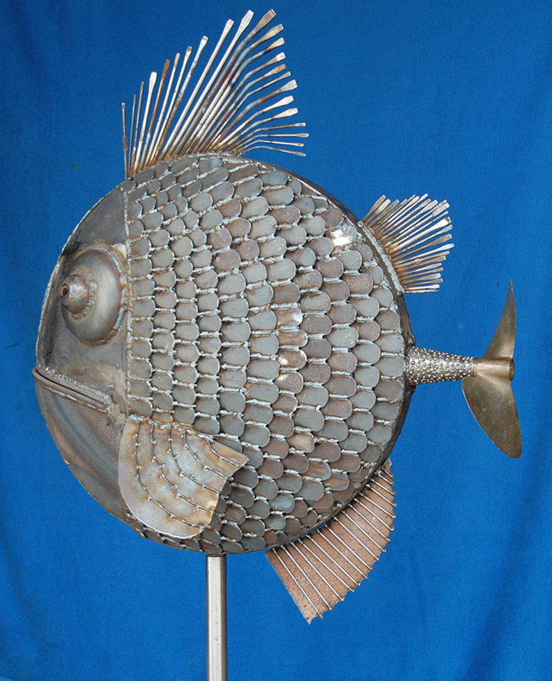 Animaux réels ou imaginaires peuplent ainsi son bestiaire de métal recyclé.