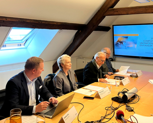 De gauche à droite : Mathieu Erb, directeur de la CCNC, Florence Nater, conseillère d’État, Claude-Alain Kleiner, président d’AVIVO et Marc-André Nardin, avocat conseil d’AVIVO étaient réunis pour présenter cette démarche novatrice.