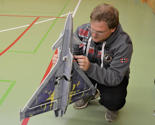 Si on vous pose la question de savoir qu’est-ce qu’on peut faire dans une salle de gym, très peu d’entre vous répondront «y faire voler des avions». Et pourtant, chaque année, les membres du Modèle Air Club Val-de-Travers font entrer leurs modèles réduits dans la salle de Belle-Roche quand l’hiver arrive. Comme la mode, qui se décline en version été - hiver, le modélisme change d’apparat au gré des saisons. On part à l’entraînement!