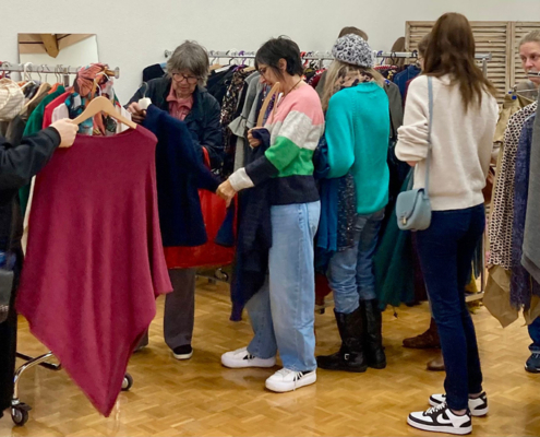 mbiance des grandes éditions samedi dernier à la salle Fleurisia à Fleurier pour le traditionnel Vid’armoires de l’association Nantibatingou. La météo maussade a encouragé de très nombreuses dames à passer du temps au chaud pour choisir en toute tranquillité leur future garde-robe d’automne-hiver : pulls moelleux, manteaux douillets et longues écharpes ont trouvé rapidement preneuses.