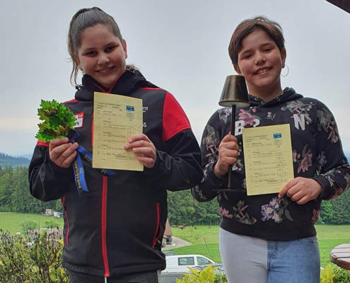 Kiara Philipona (à droite), accompagnée par la lutteuse d’Estavayer Brigitte Foulk, qui obtient sa première couronne à 26 ans.Kiara Philipona se classe 9e à Tramelan