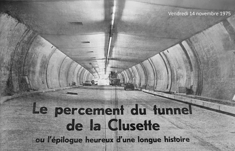 La cérémonie d’inauguration fut brièvement couverte dans l’édition du 21 novembre 1975 de notre journal, avec le titre « Un Tunnel ‹ comme ça ›… ». Qualifiée de « brillante », celle-ci avait vu notamment la présidente du Grand Conseil, Janine Robert-Challandes, couper symboliquement le ruban, et avec Carlos Grosjean et le conseiller national Rémy Schläppy franchir, tout aussi symboliquement, le tunnel dans une automobile Jeanperrin de 1897. Cinquante ans après son inauguration, le tunnel de La Clusette effectue actuellement sa cure de jouvence pour le demi-siècle à venir, même s’il est difficile d’imaginer qu’il ne fût pas toujours là.