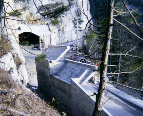Enfin, l’édile cantonal rappelait l’éboulement de 1968 ayant provoqué une demande des élus du Val-de-Travers pour trouver une solution au problème de La Clusette et l’un des projets de tunnel qui aurait débouché à la Béroche, « un tunnel de 5.5km, soit la longueur du San Bernardino, […] ». « Avec sagesse, les autorités abandonnèrent cette idée digne des Contes de Perrault pour vouer leur attention à vaincre La Clusette par un tunnel de 1 km […] », écrivait Carlos Grosjean.